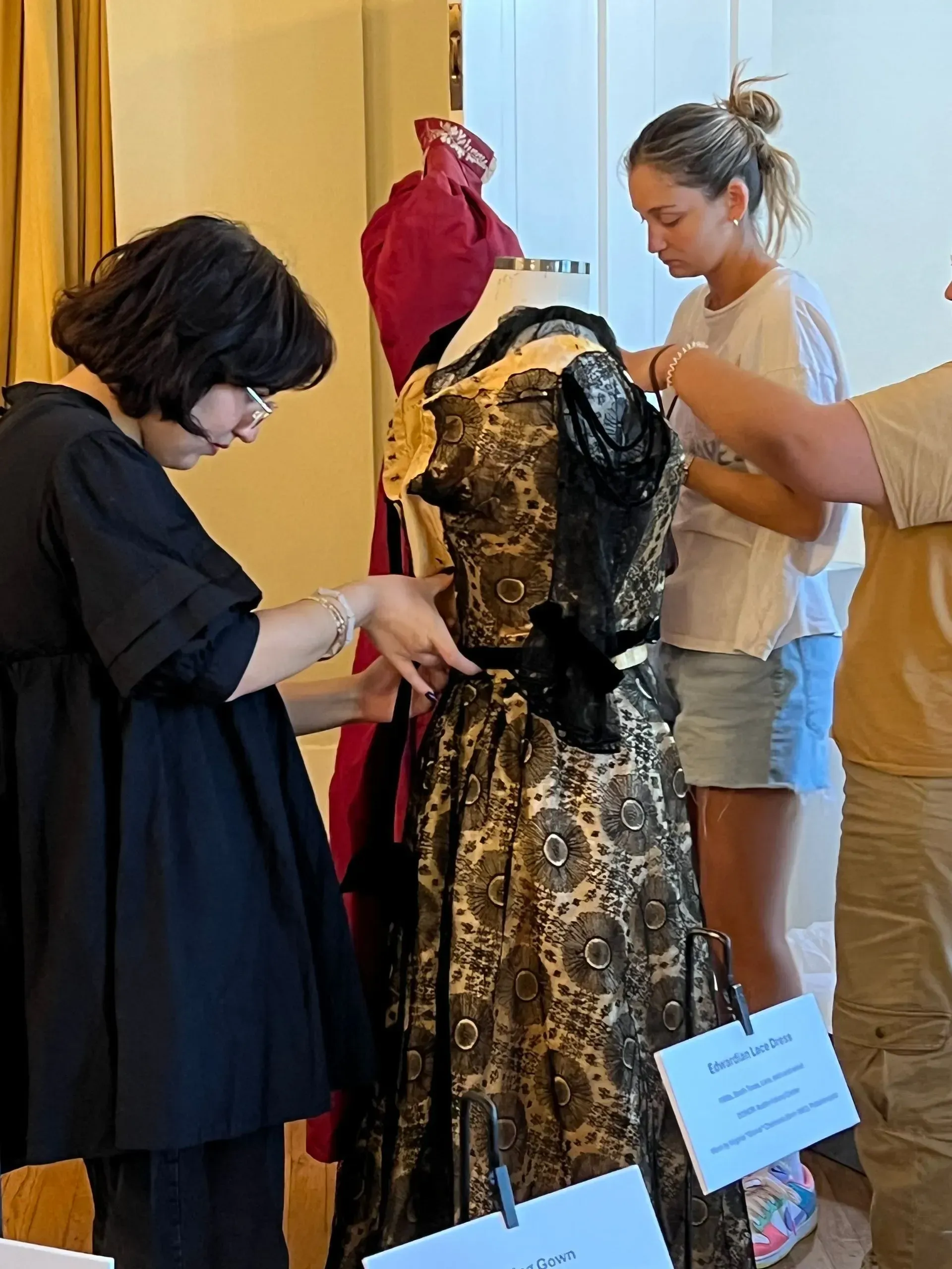 In celebration of Chateau Bellevue's 150th Anniversary, UT Austin’s School of Human Ecology students studied The Gilded Age for their class: “Historic Apparel Collection & Exhibit Management” this fall. Assistant Professor Gail Chovan (who will be the guest speaker at our November 7th luncheon) led 17 students in creating a special Gilded Age exhibit with men and women's historic garments and accessories from the 1880’s -1900's which is now on display at the Chateau through November 22, 2024.